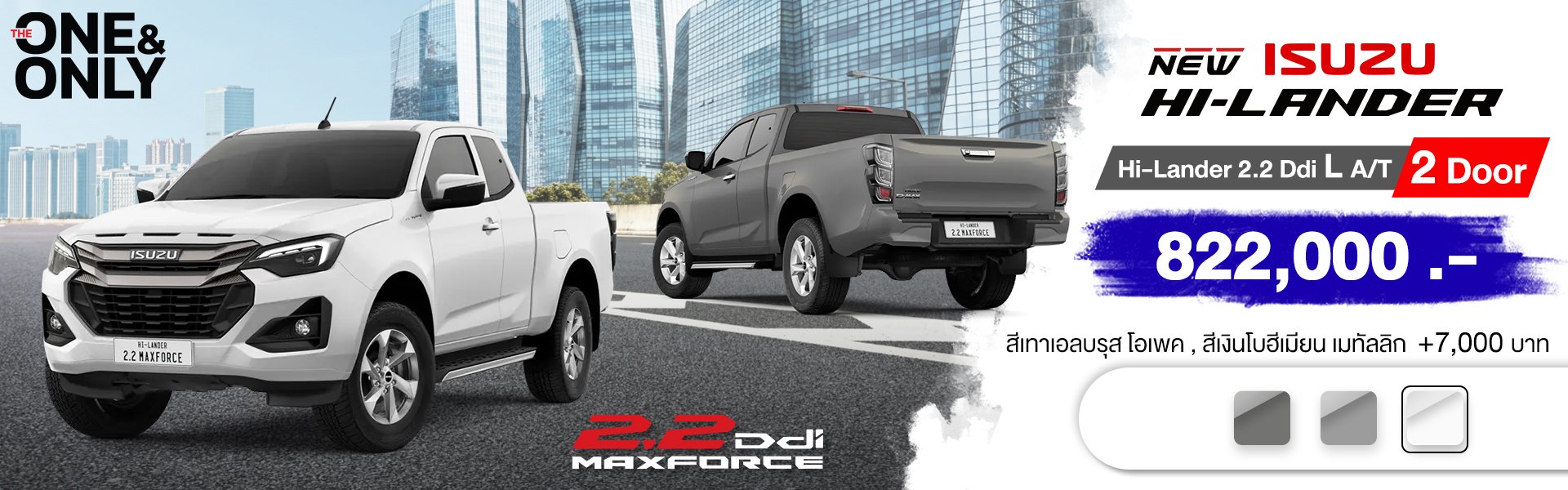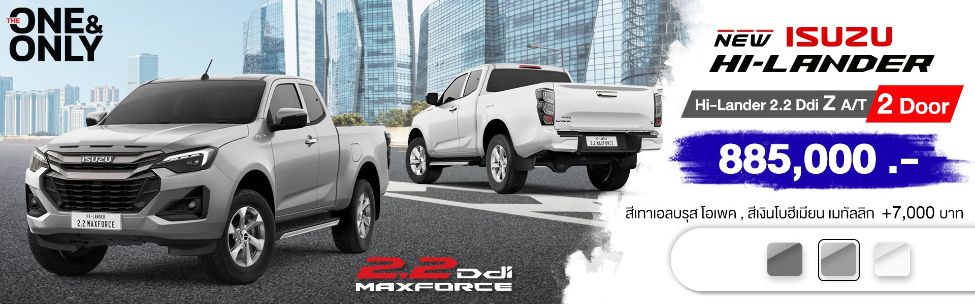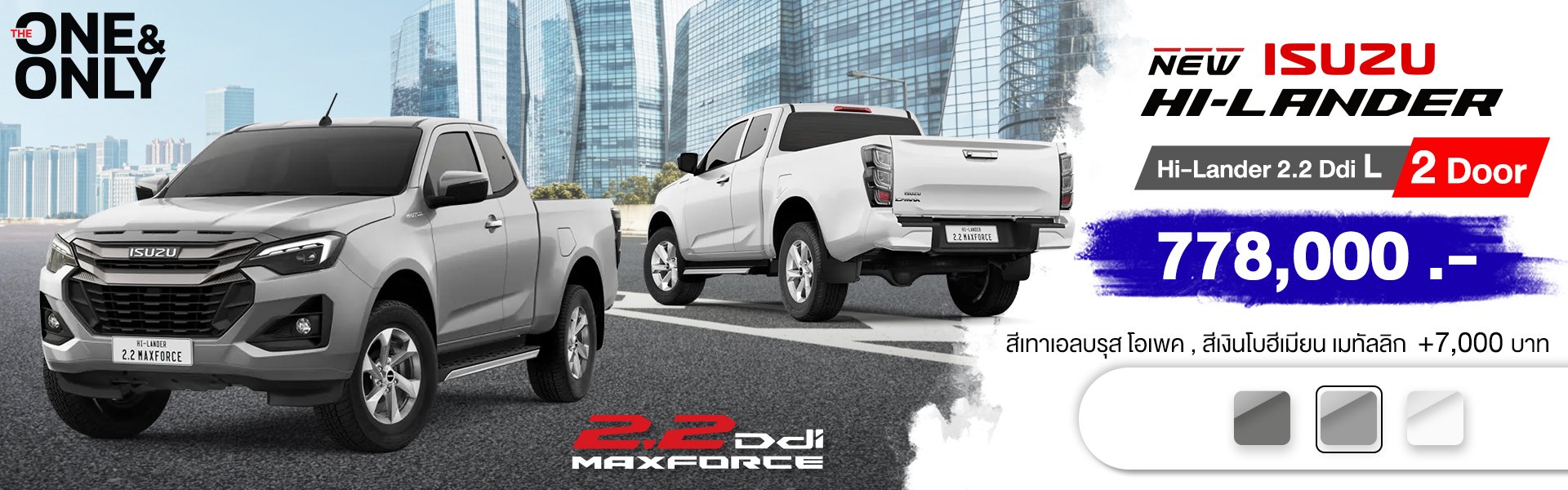 NEW! ISUZU D-Max Hi-Lander 2 Door"THE ONE & ONLY" หนึ่งเดียว...เท่านั้น!สัมผัสความลงตัว ความสะดวกสบาย พร้อมเทคโนโลยีที่ตอบรับการใช้ชีวิตยุคใหม่! อย่างครบครัน
